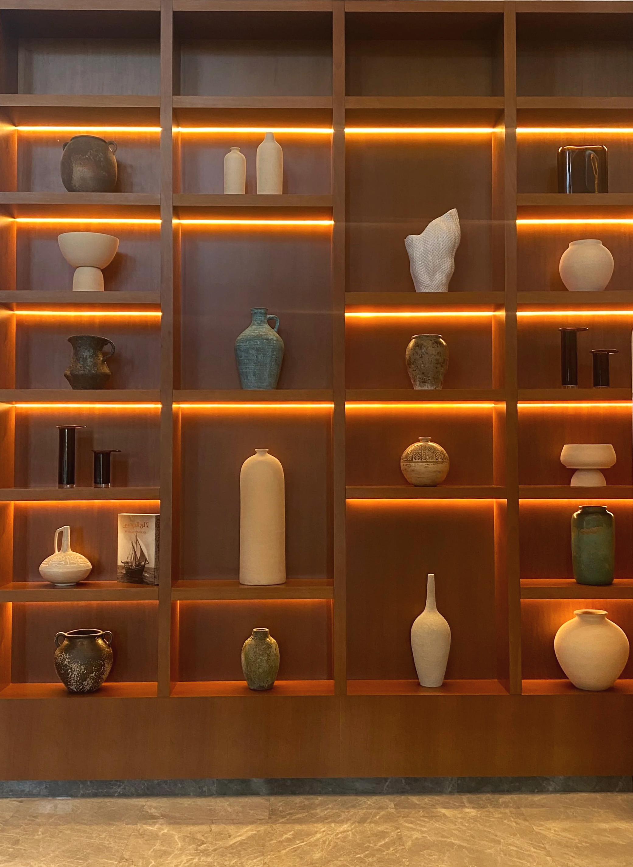 We paired this with a layer of craft-led detail: ceramics, woven forms, and material studies presented with museum-like restraint. These smaller moments invite a slower kind of attention—guests discover them in alcoves, at seating clusters, along transitional paths. Together, the large statements and intimate pieces create a continuous experience: not a collection of objects, but a story you feel as you move through the hotel.