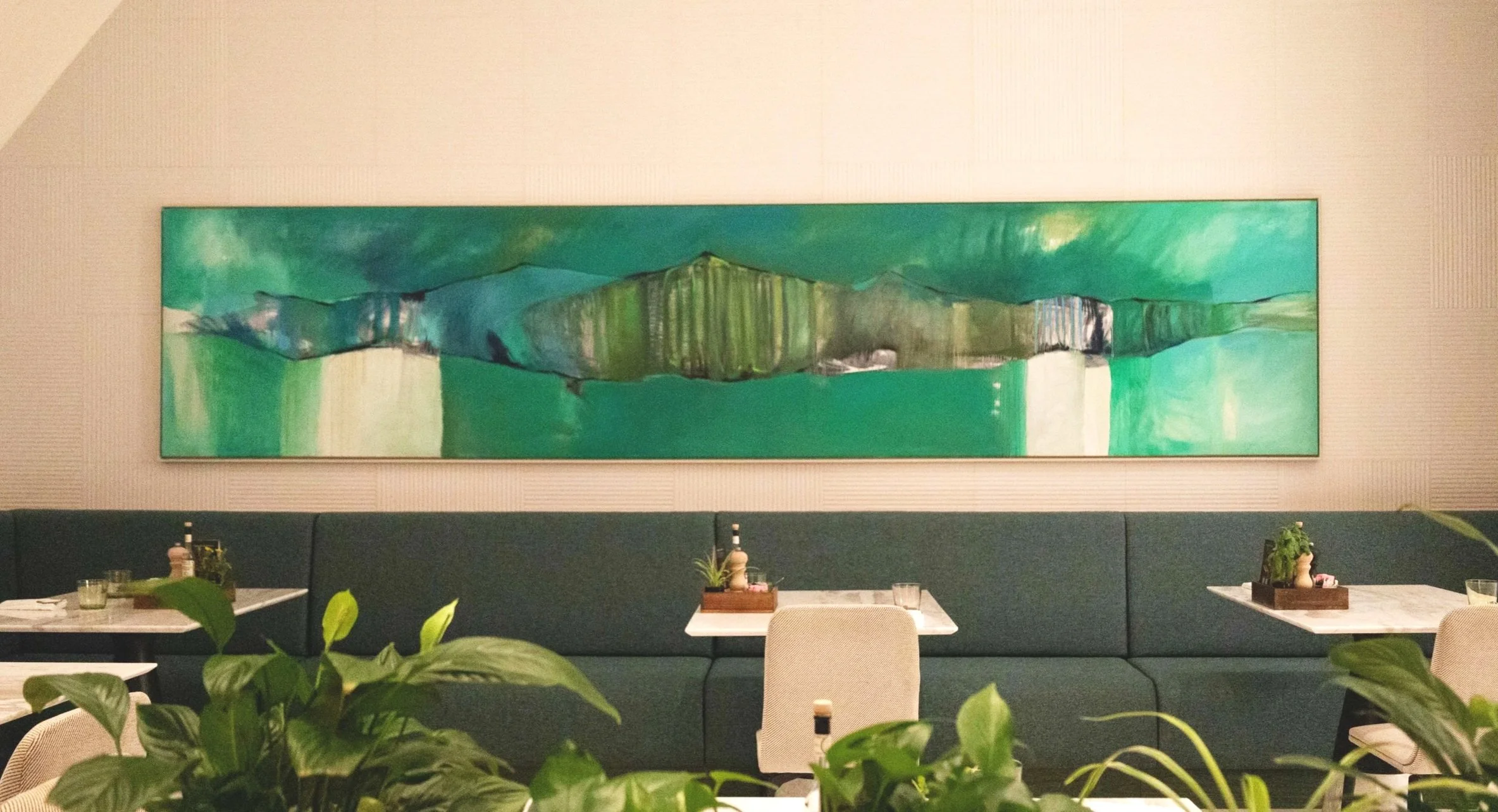 The concept leaned into contrasts that define the island: sea and stone, craft and refinement, tradition and forward motion. Textural wall works echo the movement of shoreline and wind-carved landscapes, while sculptural groupings and patterned compositions bring rhythm to open volumes. The result is an atmosphere that’s calm, confident, and memorable—art that holds the space without shouting over it.