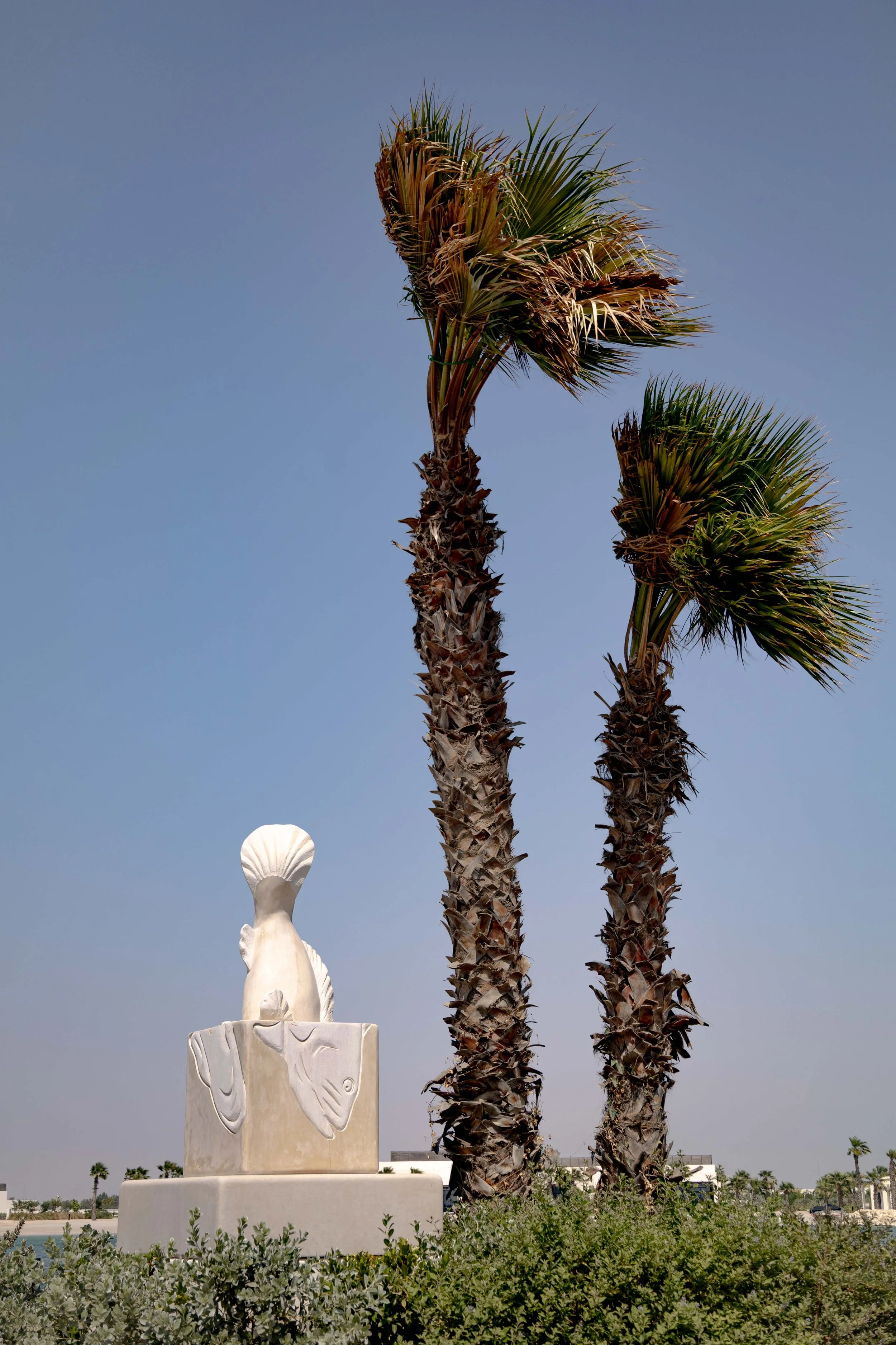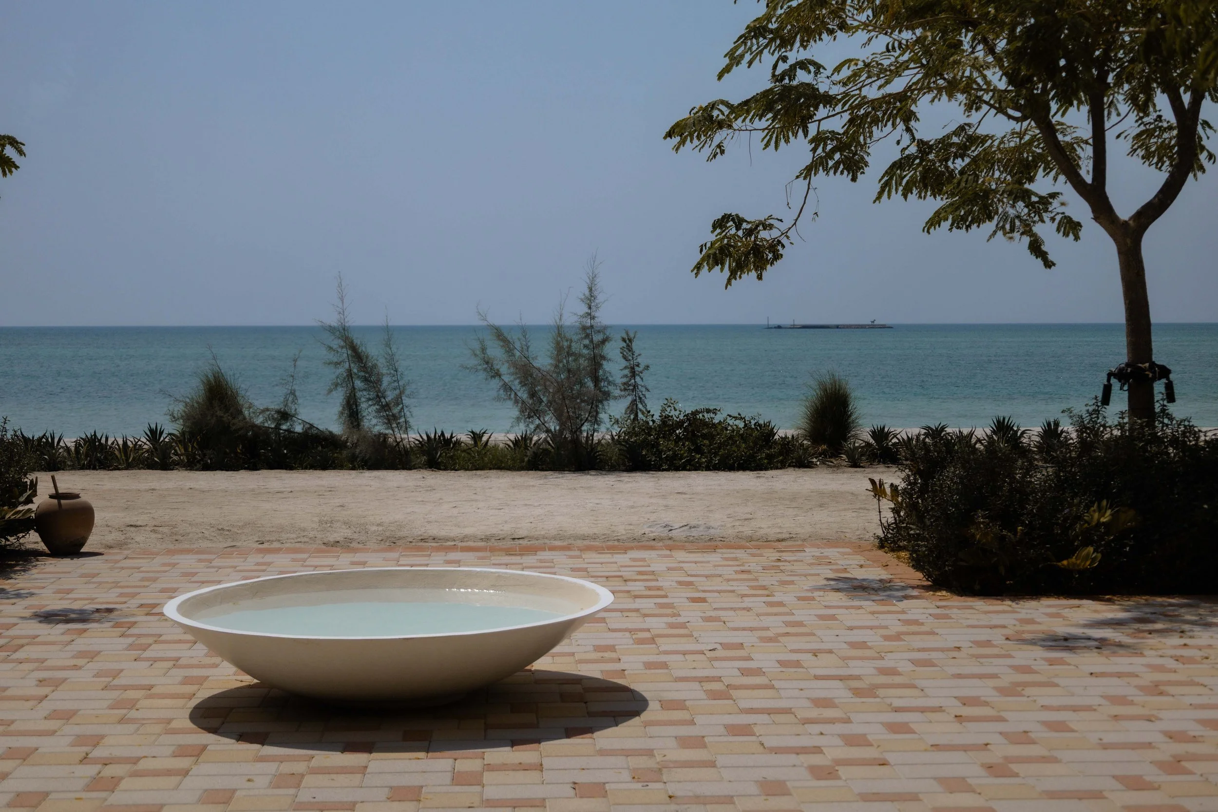 Outdoors, the collection is designed to meet guests in motion—at entrances, along pathways, and beside the waterline. Sculptural moments echo the island’s natural forms and the geometry of local architecture, while subtle interventions invite pause without demanding attention. Placed against palm groves, bright courtyards, and open sea views, each work anchors the landscape with a sense of continuity: contemporary, but unmistakably of Hawar.